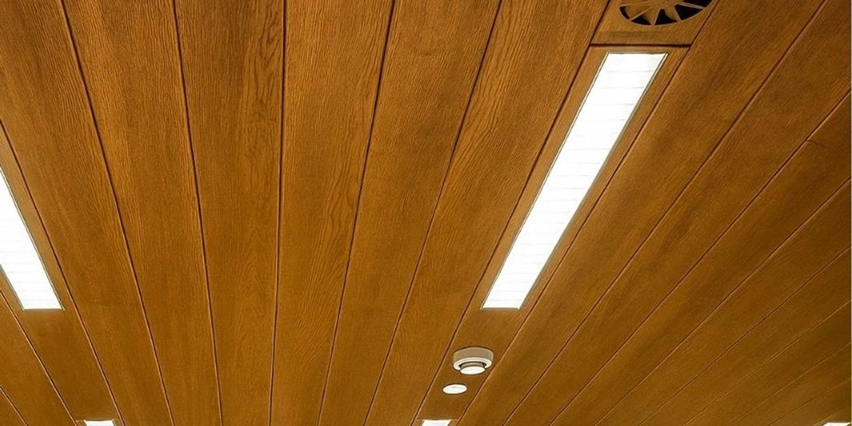 P.R. FORTILAM 150 C ceiling system comprises of 150 mm X 15 x 0.50 mm panels roll formed out of PVC wooden skin plate 140-160 microns polyvinylchloride coated front side. G. I sheet (zinc coating 150 GSM as per UNI EN 10346:2009). Light Reflection should be as per ASTM E-1477-98 and Material should match corrosion test or Resistance to salt fog EN13523-8 e ASTM B117-16 300 hour. Material should pass fire test as per BIS 476PART 6:1989+A 1:2009 & PART 7:1997. Raw material with EN13501-1:2019 A2S2D0. Panels are fixed on to roll formed carriers 30 mm wide X 40 mm deep out of 0.6 mm G. I Coil with cutouts / prongs to hold the panels in module of 150 mm at maximum 1.7 m c/c without insulation and at maximum 1.5 m c/c with insulation. Carriers are suspended from the roof or truss by 4 mm dia. galvanized steel wire rod hanger or ceiling angle of size 24x24mm x 0.5 mm at max. 1.3 m c/c Hangers are fixed to the roof by ‘J’ hooks and nylon inserts. Panels are factory cut in lengths up to maximum 5 m to suit site dimensions or shop Drawings. Edge profiles or wall angles are 24 mm X 24 mm X 0.35 mm thick and match the color of the panel. Panels can be perforated with the dia hole of 2.5 mm or 1.8 mm. Non-woven Acoustic Fleece shall be used on the back side of perforated tile to match NRC 0.7 (IS: 8225/ISO: 354/ASTM 423 C) for sound Absorption. All PVC Coated material should pass scratch test and pencil harness test as per ASTM D 3363-92a B.